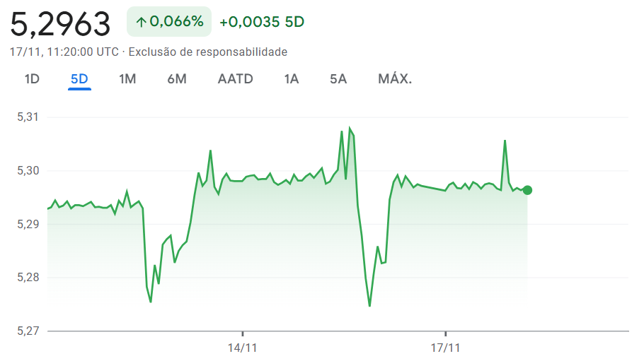 No mesmo dia, o dólar recuou 0,02%, fechando a R$ 5,297. Depois de duas altas seguidas, a moeda resolveu observar. Isso importa porque: