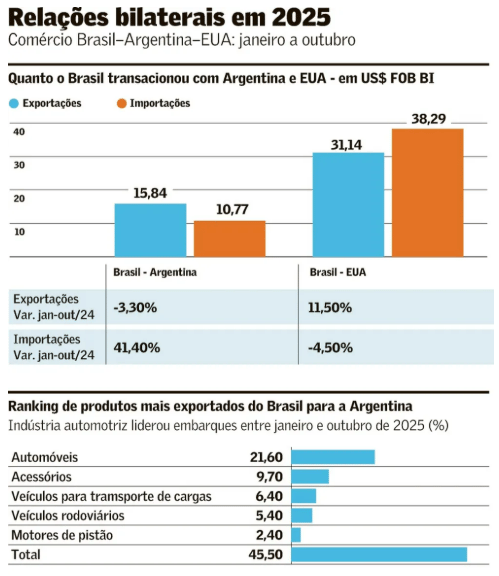 A Argentina é um dos nossos maiores parceiros comerciais, especialmente para a nossa indústria. A gente vende muito carro e produtos industrializados para eles, graças às vantagens do Mercosul. Se a Argentina abrir as portas para os produtos americanos (que são muito competitivos), a indústria brasileira pode perder um mercado gigantesco. É um risco real para as nossas fábricas e empregos aqui.