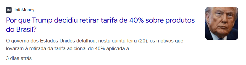 Teve até notícia boa que foi ignorada: o Donald Trump (sim, ele de novo) assinou um decreto tirando umas tarifas malucas de 40% que tinham colocado sobre a nossa carne bovina, café e suco de laranja. Isso é ótimo para as nossas exportações, mas o medo dos juros americanos falou muito mais alto hoje.