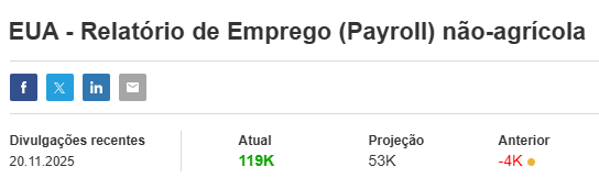 Na quinta, enquanto a gente descansava no feriado, saiu um dado importantíssimo lá nos EUA chamado "Payroll". É basicamente o relatório de empregos deles. O mercado esperava que eles tivessem criado umas 50 mil vagas em setembro. Sabe quantas criaram? 119 mil. Mais que o dobro!