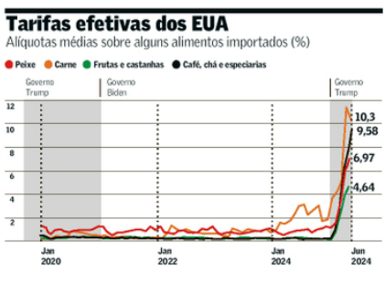 🍤 Tarifas de Trump: protecionismo encarece alimentos e pesa no bolso do consumidor.