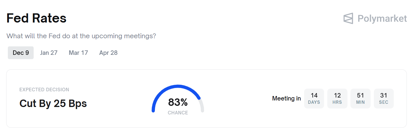 Pois bem, o Sr. John Williams e o Sr. Christopher Waller, cartolas do Fed, falaram coisas que fizeram a galera de Nova York apostar alto: 85% de chance de corte de juros em dezembro. Antes, essa certeza era menor, tipo 71%.